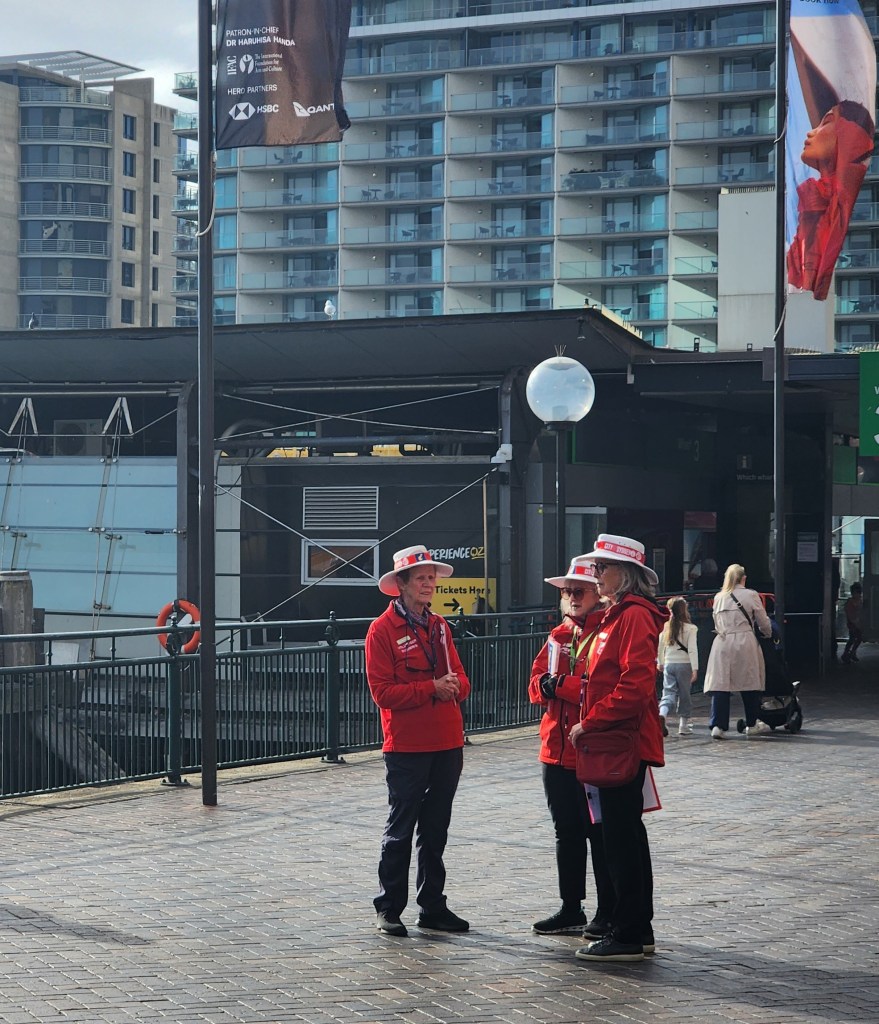 This is the center of all things Sydney Harbor. https://www.sydney.com/destinations/sydney/sydney-city/circular-quay You can take the ferry, tours, eat, and visit all the iconic destinations from here. We were unfamiliar with the public ferry system, so a tour was the best for us at the time. We chose the Hop On Hop Off https://www.viator.com/tours/Sydney/Sydney-Harbour-Hop-on-Hop-off-Cruise with the http://www.taronga.org.au/ Zoo included. I highly recommend the Zoo. We ended up buying the two day pass, and jumped on the ferry at Watson Bay, the second day. The crew was very helpful and kind. Kindness was found everywhere we went. The people of Australia were friendly, approachable and always wanted to help. At the dock, I stopped to talk with the well known volunteers seen in so many depictions of Australia, recognized by their hats and red outfits. They were enjoyable to talk with, and we laughed at the differences in how our words have different meanings, even though we all spoke English. I think they are so much more creative. Lol! They have many uses of the word “away”, “take away” (to go), “clean away” (garbage pick up or anything else that needs picking up) and more. Oh, garbage is “rubbish.”
