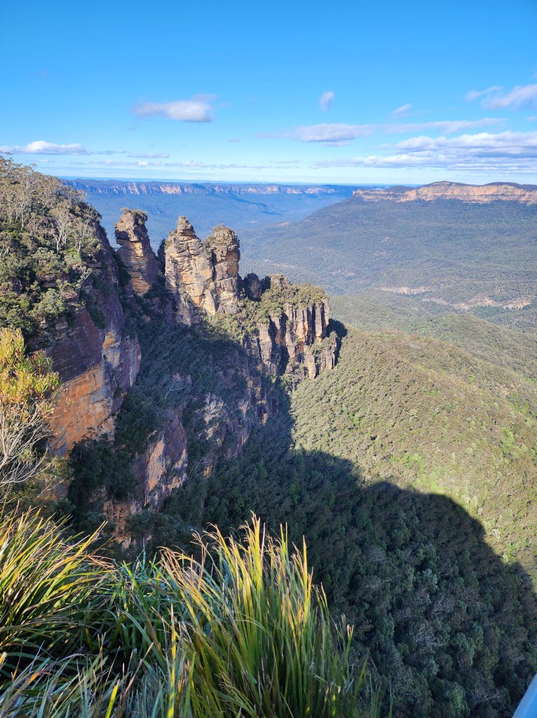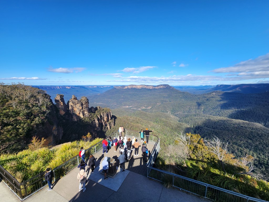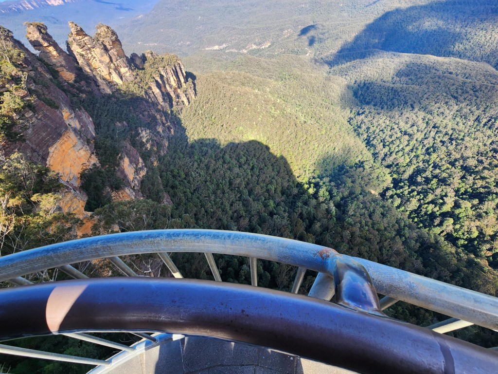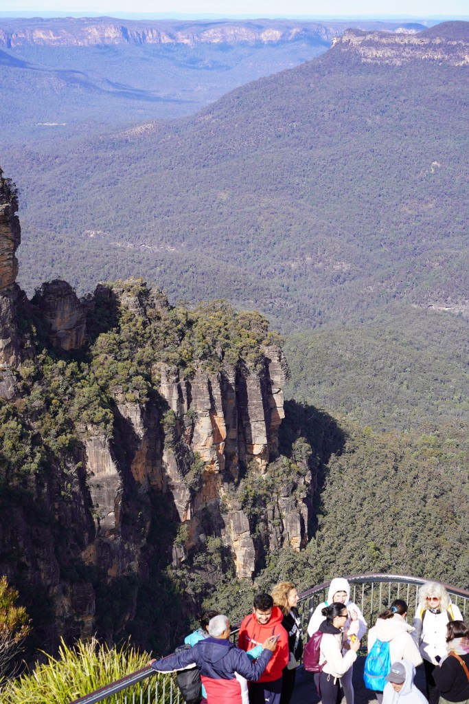 The Blue Mountains are located about 50K outside of Sydney. It’s about a 2 hour “ish” drive to Katoomba where the main attractions are located. We did not have a car and the tours were booked out, so we opted to take the train. It takes longer, but it was enjoyable and peaceful to watch the countryside go by. You get a glimpse of the smaller towns on the outskirts of the city. Along the way, we crossed gorgeous mountainsides and a river gorge, and caught a view of our first wild kangaroos. Funny, the people of Australia see them all the time, but we were so excited! I guess it’s like someone coming to the southwest and seeing a saguaro for the first time. Ha Ha! In Katoomba we used the Hop On Hop off bus to get around. Again, we were not very familiar with the area so it worked for us. It was fun to get on the double decker bus, and they give you a guided tour. Otherwise, the public bus runs around the same route and comes more often for pickup. The Blue Mountains get there name from the terpenoids emitted in large quantities by the eucalyptus trees in the Blue Mountains, which cause a blue haze. The Blue Mountains have been inhabited by the aboriginal peoples for a millennia. The Gundungurra Tribal Council Aboriginal Corporation is in Katoomba, and, in the lower Blue Mountains, the Darug Tribal Aboriginal Corporation. We only had one day to explore the area, so we limited it to the main stops including The Three Sisters at Echo Point, and Scenic World. The views from Scenic World were beautiful, but we found it very crowded and difficult to get on the rides. It may have been due to the time we arrived, so I would recommend looking for a better opportunity to visit the park when it was less crowded. While stopping for something to eat at Scenic World, I was waiting for my coffee, when the lady in the café told me to wait for the, “buzz off” to light up and to come back for my cappuccino, by the way, the best cappuccinos I have had were in Australia. I said, did you call that, pointing to a “pager” as we call it in the states, a “buzz off?” She said, “yes”, with a smile. It became my favorite term in Australia. If you tell someone to “buzz off” in the states that means to get out of here and leave me alone. Too funny! It made me giggle for the rest of the day!