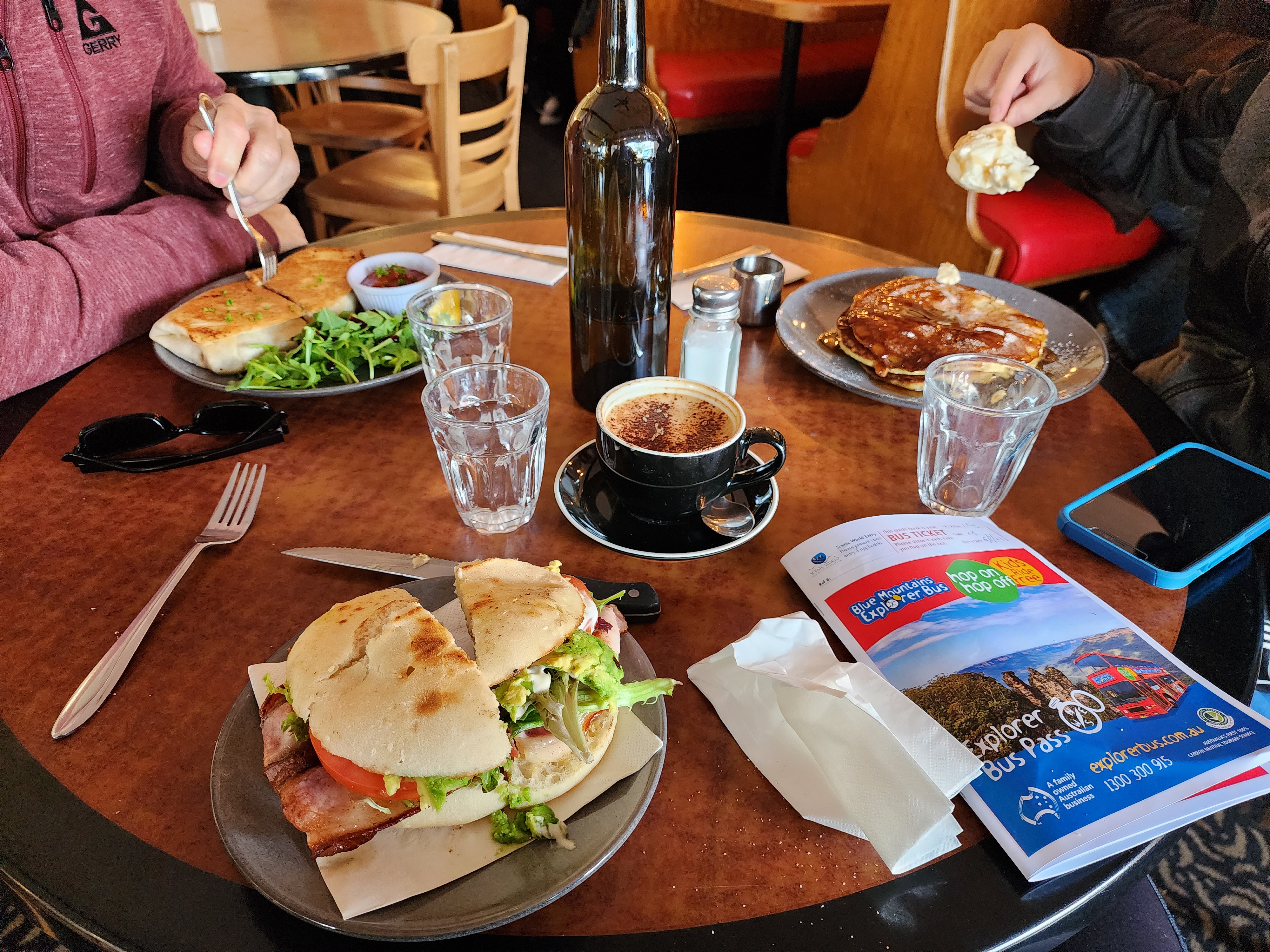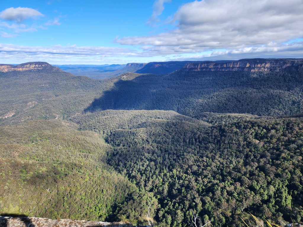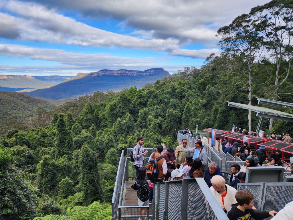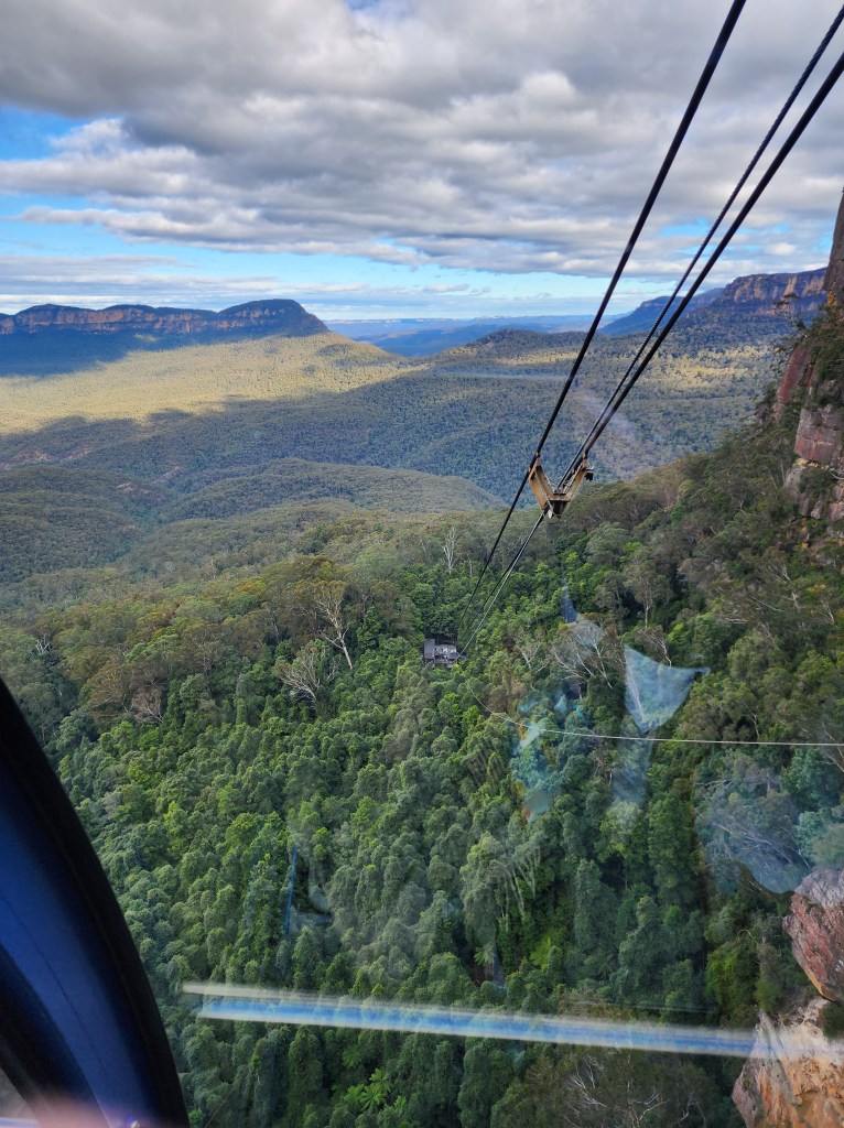 The Blue Mountains are located about 50K outside of Sydney. It’s about a 2 hour “ish” drive to Katoomba where the main attractions are located. We did not have a car and the tours were booked out, so we opted to take the train. It takes longer, but it was enjoyable and peaceful to watch the countryside go by. You get a glimpse of the smaller towns on the outskirts of the city. Along the way, we crossed gorgeous mountainsides and a river gorge, and caught a view of our first wild kangaroos. Funny, the people of Australia see them all the time, but we were so excited! I guess it’s like someone coming to the southwest and seeing a saguaro for the first time. Ha Ha! In Katoomba we used the Hop On Hop off bus to get around. Again, we were not very familiar with the area so it worked for us. It was fun to get on the double decker bus, and they give you a guided tour. Otherwise, the public bus runs around the same route and comes more often for pickup. The Blue Mountains get there name from the terpenoids emitted in large quantities by the eucalyptus trees in the Blue Mountains, which cause a blue haze. The Blue Mountains have been inhabited by the aboriginal peoples for a millennia. The Gundungurra Tribal Council Aboriginal Corporation is in Katoomba, and, in the lower Blue Mountains, the Darug Tribal Aboriginal Corporation. We only had one day to explore the area, so we limited it to the main stops including The Three Sisters at Echo Point, and Scenic World. The views from Scenic World were beautiful, but we found it very crowded and difficult to get on the rides. It may have been due to the time we arrived, so I would recommend looking for a better opportunity to visit the park when it was less crowded. While stopping for something to eat at Scenic World, I was waiting for my coffee, when the lady in the café told me to wait for the, “buzz off” to light up and to come back for my cappuccino, by the way, the best cappuccinos I have had were in Australia. I said, did you call that, pointing to a “pager” as we call it in the states, a “buzz off?” She said, “yes”, with a smile. It became my favorite term in Australia. If you tell someone to “buzz off” in the states that means to get out of here and leave me alone. Too funny! It made me giggle for the rest of the day!